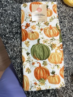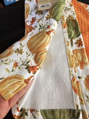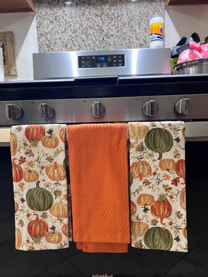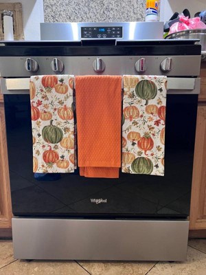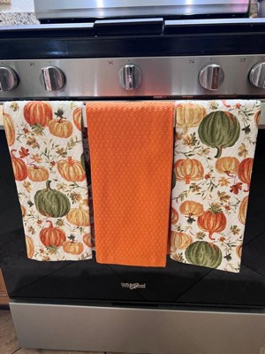 Product Name: MARTHA STWEART Autumn Harvest Kitchen Towel 3-Pack Set, 100% Cotton with Absorbent Terrycloth, Decorative Kitchen Towels, Pumpkins, 16"x28"