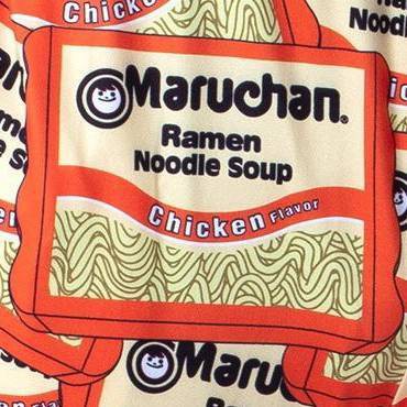 This is an GREAT Maruchan Ramen Noodles product! In the busy times in our life, it's always great to have a hot, tasty cup of ramen noodles ready for us in minutes! These Maruchan ramen noodle loungewear pants feature a fun allover design of the Chicken flavor soup bag. Each ramen noodle sleep pant is made of an ultra-soft 92% polyester / 8% spandex that will have you longing to slide the pajamas on every day! The pants have 2 hand deep pockets, a button-closure fly, and a drawstring closure with an elastic stretch waistband.