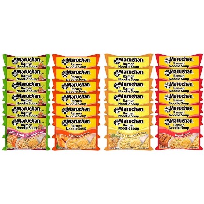 Maruchan Ramen Instant Noodle Soup 24 Packs, 4 Flavors - 6 Pack Shrimp, 6 Pack Roast Beef, 6 Pack Soy Sauce, 6 Pack Chili