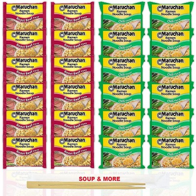 Maruchan Ramen Instant Noodle Soup Variety, 2 Flavors - 6 Packs Roast Beef & 6 Packs Chili, 3 Ounce Single Servings