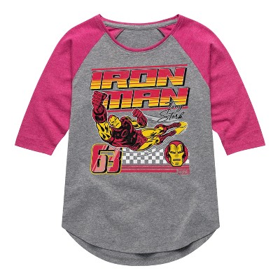 Girls' - Marvel - Iron Man 8 Bit Pixelated Shirt Tail Raglan Graphic T-shirt