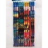 - COLORFUL VARIETY: Includes pencils in striking blue, yellow, and turquoise metallic finishes, each decorated with dynamic superhero artwork