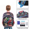 Gear up for adventure with this youth Marvel 5-piece backpack set. The 16" clear PVC and 600D backpack showcases vibrant images of Hulk, Captain America, Captain Marvel, and Spider-Man on the front. It features a large front pocket with a zipper closure, expandable mesh bottle sleeves with reflective tape, a laptop sleeve, padded adjustable shoulder straps, a top handle, and an ID tag for personalization. The set also includes pencils, stickers, a ruler, and a utility case for school essentials. For easy care, just wipe it clean.
