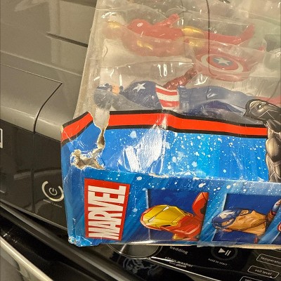 Item arrived with box damaged and Captain America’s shield missing.