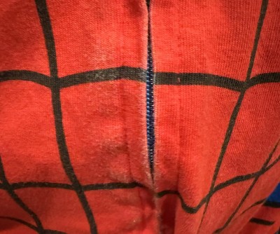 Super disappointed. The white image was dried over the zipper, had to pull it apart to even try it on. The eyes on the hood are different material than the painted design on the chest. The fabric was thin overall and it ran small as well. This was not Target quality.