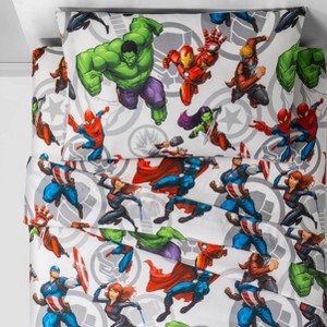 Marvel Avengers Team Twin Kids' Sheet Set: Microfiber Bedding with Pillowcase & Fitted Sheet, Machine Washable