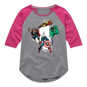 Girls' - Marvel - Avengers Birthday 4 Shirt Tail Raglan Graphic T-shirt - 1 of 3