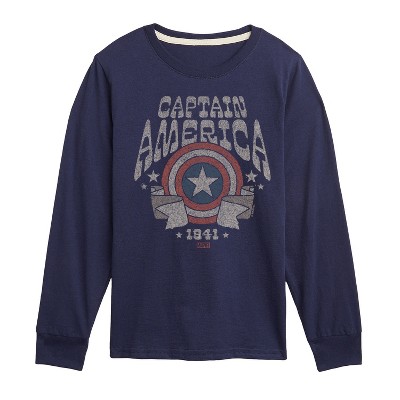 Boys' Marvel Captain America Brooklyn Long Sleeve Graphic T-Shirt - Navy - 2T