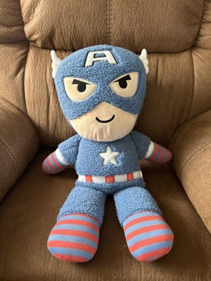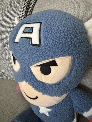 Your young Marvel fan will love snuggling up with their favorite Avenger with this Marvel Captain America Kids' Pillow Buddy from The Marvel Collection by Pillowfort™. This figural pillow buddy doll is made from plush recycled polyester fabric and is designed as a smiling Captain America for a fan-favorite look. Standing 21 inches high, it makes a fun pairing with Marvel-themed pillowcases and sheets on their bed.