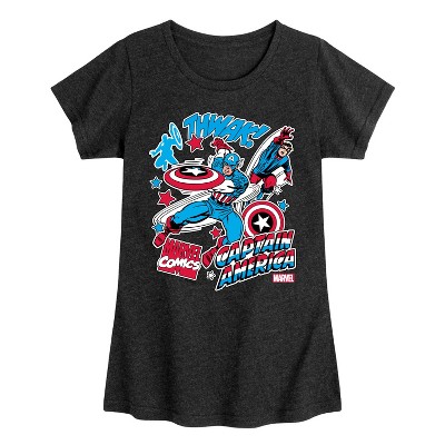 Marvel Captain America - Collage - Toddler and Youth Girls Fitted Short Sleeve Graphic T-shirt - Introducing our collection of officially licensed Marvel graphic apparel, where legendary superheroes and iconic moments from the Marvel Universe come to life on high-quality, comfortable clothing. Each design is carefully crafted with vibrant, detailed artwork featuring beloved characters like Spider-Man, Iron Man, Captain America, and the Avengers. From bold graphic tees to stylish hoodies and accessories, our apparel celebrates the thrilling world of Marvel with cutting-edge prints, premium fabrics, and a perfect fit for fans of all ages.