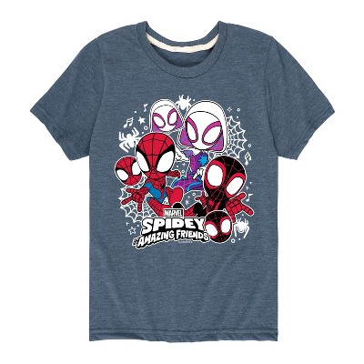 Marvel Your Friendly Neighborhood Spider-Man - Friendly Spidey Collegiate - Toddler And Youth Short Sleeve Graphic T-Shirt - Introducing our collection of officially licensed Marvel graphic apparel, where legendary superheroes and iconic moments from the Marvel Universe come to life on high-quality, comfortable clothing. Each design is carefully crafted with vibrant, detailed artwork featuring beloved characters like Spider-Man, Iron Man, Captain America, and the Avengers. From bold graphic tees to stylish hoodies and accessories, our apparel celebrates the thrilling world of Marvel with cutting-edge prints, premium fabrics, and a perfect fit for fans of all ages.