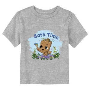 • The smallest family members are also the most stylish with this new toddlers' t-shirt that is perfect for every occasion! Featuring Baby Groot taking a bath while being captivated by a bug, along with the phrase: "Bath Time" above him.