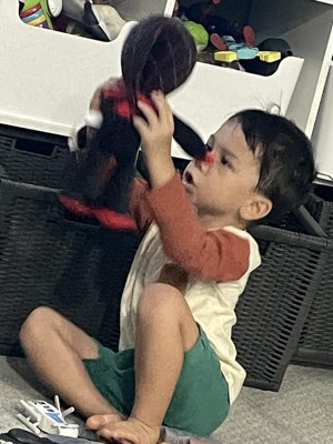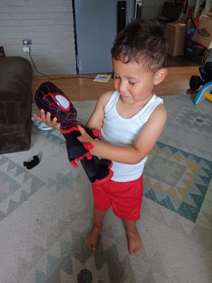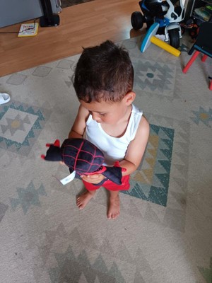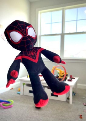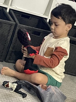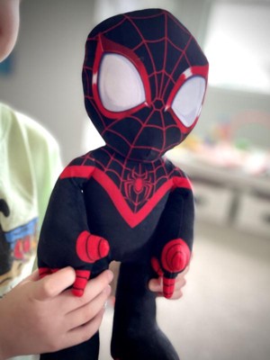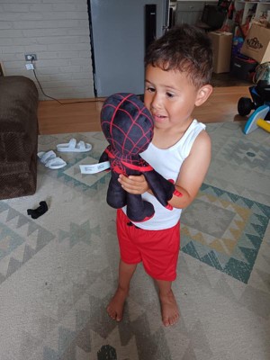 [This review was collected as part of a promotion.] When I first took the figure out of the box and squeezed its chest to activate the sounds and phrases, I was surprised by how deep the voice was. It’s the teenage Miles Morales from the Spider-Verse movies, not the high-pitched one from the Disney cartoon my kids are obsessed with. But did my 3-year-old care? Not at all!The toy’s size, softness and phrases have made it an instant favorite in our house. At nearly a foot tall, it’s the perfect size for little hands to carry around. The plush material is super soft, making it great for hugs. This toy goes everywhere with us. Half the time, it's being cuddled, and the other half, it’s flying through the air on web-slinging adventures. Highly recommend!