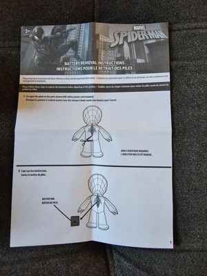 [This review was collected as part of a promotion.] The Miles Morales plush has great features and will be enjoyed by children. Miles hands are in the traditional web-slinging position. The fabric is very soft, although will attrack fuzzies easily. It is about a tall as a ruler. Miles has several sayings when the logo on his stomach is pushed. Your child will push it so much that you'll have the sayings memorized in no time!! The stitching seems very secure and even comes with instructions on how to remove the battery. At first, I loved this feature as replacing batteries in a plush can be a task. However, to reach the battery pack, you have to cut the back fabric. The instructions do not say how to resecure the fabric. After further reading, the instructions are NOT to replace batteries, but rather to remove them before disposing of the plush.