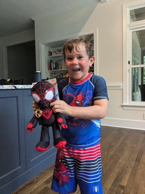 [This review was collected as part of a promotion.] My little guy (4 years old) LOVES all things Spiderman. He is a big fan of the Spider-verse and Miles Morales. When he got this Miles plushie he was thrilled and started playing with him immediately. He loves the different phrases the plushie will say. This plushie has become his bedtime favorite as well as a companion - watching movies together, shopping and even taking him to his recent haircut. This plushie is a big hit for the Spiderman loving little ones.