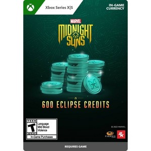 Eclipse Credits are an in-game currency for Marvel’s Midnight Suns used to purchase premium cosmetic character skins via the in-game Marketplace. Customize the look of your Midnight Suns team and fight the legions of Lilith in style! This pack contains 600 Eclipse Credits. Owners of the Legendary Edition or the Season Pass already have all premium character skins and should not purchase Eclipse Credits. Marvel’s Midnight Suns game required, sold separately. Premium cosmetic character skins must be used with in-game characters. Some characters may require unlocking through gameplay.