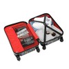 Easy Organization: A molded front pocket makes it easy to grab your travel documents, book, or laptop, while the inside of the suitcase boasts cross straps on one side and a zipped fabric divider on the other.