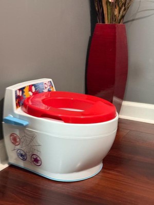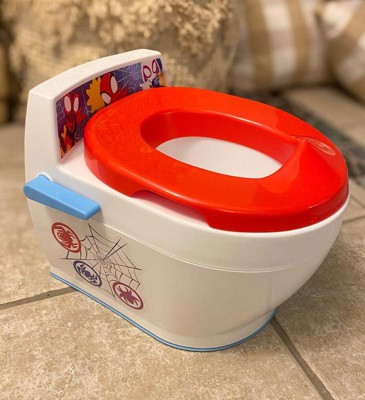 [This review was collected as part of a promotion.] This Spidey potty has been a lifesaver for potty training my son! The flushing sound makes it fun, and the removable seat makes the switch to the big toilet way easier. It’s sturdy, easy to clean, and helps keep the mess to a minimum. Total win for both kids and parents!