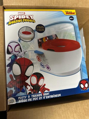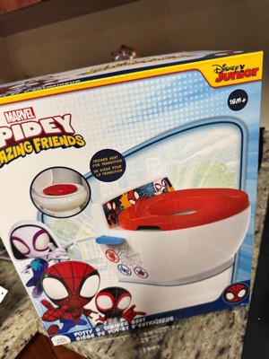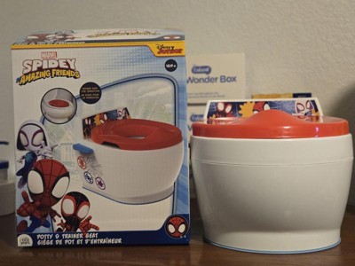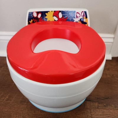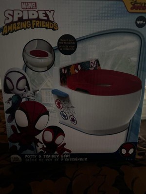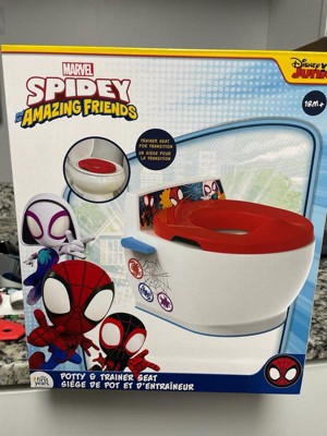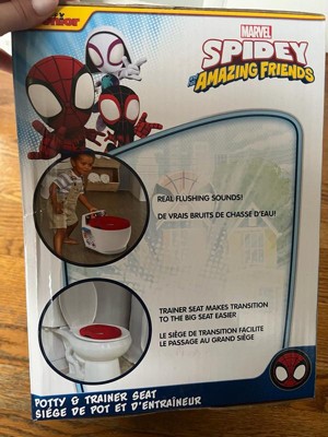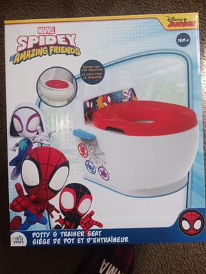 [This review was collected as part of a promotion.] The First Years Spidey and His Amazing Friends 2-in-1 Potty & Toddler Toilet Seat is a great tool for making potty training more engaging and less intimidating for young kids. The bright, colorful Spider-Man design adds a fun touch that encourages kids to use the potty. The 2-in-1 feature offers versatility, functioning as both a standalone potty and a removable toddler toilet seat that fits on an adult toilet. It's easy to clean and durable, making it a practical choice for parents. Overall, it’s a well-designed, functional potty training aid that helps kids transition with confidence and safety in mind.