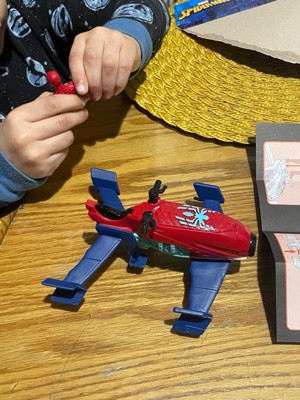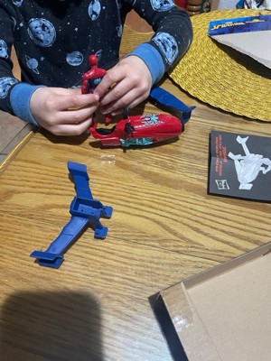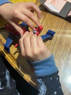 [This review was collected as part of a promotion.] I received this free in lieu of my honest review. The toy was easy to assemble. Has 4 parts including Spiderman. Spider-Man was tough to get out of his box. The front wings didn’t want to stay on but my grandson loves it! I am sure this toy will get a lot of use this summer!