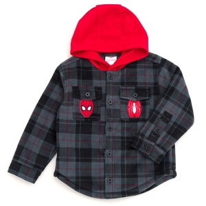 Marvel Spider-Man Flannel Hooded Plaid Shacket with Fleece Lining Toddler - 1 of 4