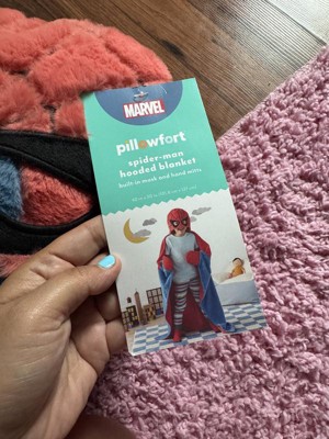 Get your child ready for web-slinging fun with this Marvel Spider-Man Kids' Hooded Blanket from The Marvel Collection by Pillowfort™. Made from soft 100% microfiber polyester, this hooded blanket features a built-in Spider-Man mask and matching gloves for the ultimate Avenger experience. This cozy blanket is great for snuggling and playing and helps keep your young hero warm during all of their action-packed adventures.