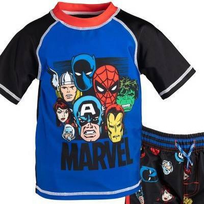 • Officially licensed Marvel Avengers little boys cool and stylish short sleeve swim shirt top and cute and stylish swimming shorts bottoms