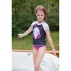 Stylish rash guard swim shirt and bikini bottoms with a comfortable fit and easy-to-dress design; youth fashion swimwear made from material that protects your child from the sun and is safe on skin