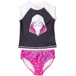 Officially licensed Marvel Spider-Gwen Ghost Spider toddler girls cool and stylish short sleeve swim shirt top and cute and stylish full coverage bottom