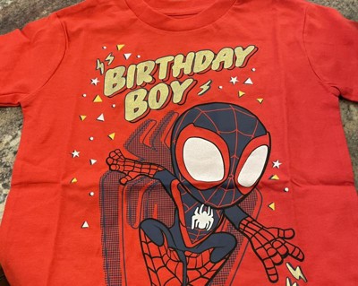Celebrate your special day with Spidey and His Amazing Friends in this cool and stylish Marvel birthday shirt! This cute short sleeve tee features fun and vibrant artwork of your kid's favorite Spiderverse superheroes looking ready for action! Choose from awesome designs of Spidey with the words "Birthday Web-Slinger," Miles Morales with the words "Birthday Boy," Spider-Gwen a.k.a. Ghost Spider with the words "Birthday Girl," Spider-Gwen with the words "Big Sister," Spiderman with the words "Your Friendly Neighborhood Big Brother," and Hulk with the words "Birthday Smash." Dressed in this soft and comfy Spiderman tshirt, your little hero is ready for an exciting birthday adventure!