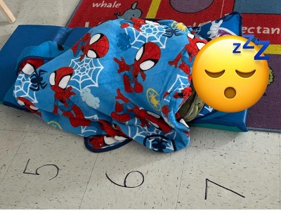 - Fun Spidey Team Toddler Nap Mat features an allover action packed pattern in bold shades of blue, red and white