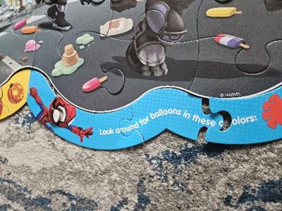 Save the day with Spidey, Ghost-Spider, and Miles Morales with this Look and Find book-and-puzzle set! Search for hidden objects and characters in 7 busy scenes, then turn to the back of the book for more Look and Find activities. Build the 40-piece puzzle for an extra scene, plus more "find'ems" for your child to spot! Completed puzzle measures approximately 2' tall by 3' wide.