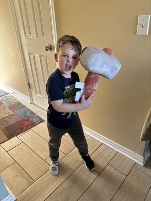 My Marvel and Avengers loving son was so surprised to see this! You see the characters quite regularly but not really their accessories! The hammer is really a fun idea. It is soft like a plush but has some sort of material inside for it to keep its shape.