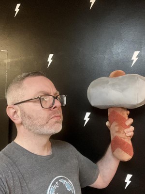 This soft stuffed Thor hammer (mjolnir) is a great stuffy for any age, especially those that are fans of the God of Thunder. My son loves this hammer and runs around with it, with his Thor costume on. We have other replica mjolnirs but this one is great because it’s plush and soft like a stuffy.