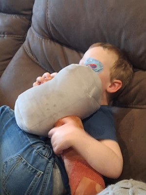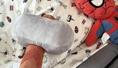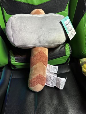 I received the Disney by Pillowfort figural pillow thor hammer to review. It came with a lot of tags on the side of the hammer which i found very distracting. I ended up cutting the tags off. I found the hammer very soft and comfortable for me to rest my head on. When i gave it to my grandsons (15 month old and 4 year old) to play with they had a blast hitting each other with it, snuggling with it, and using it as a pillow.
