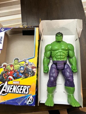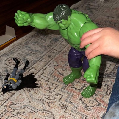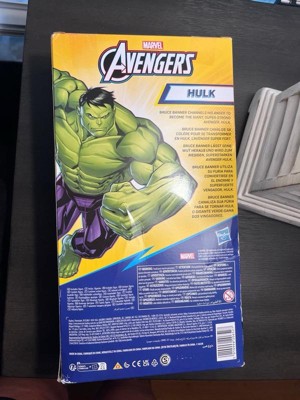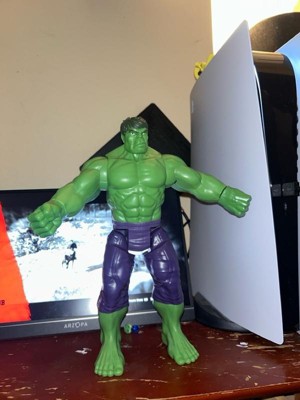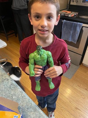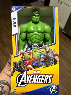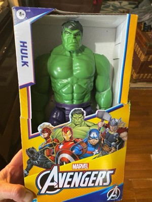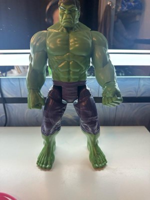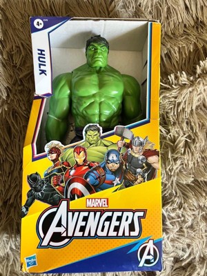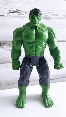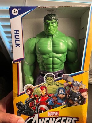 oys and girls can create their own super hero and villain battles with this Marvel Avengers Titan Hero Series Deluxe Hulk action figure! This 12-inch-scale Avengers figure has movable limbs so kids can pose toy during playtime. Hulk toy is compatible with most Titan Hero Blast Gear launchers and Power FX packs that kids can attach to figure's back port to launch projectiles or hear sound effects. (Blast Gear and Power FX sold separately. Subject to availability.) Hulk figure comes in an open window box and makes a great gift for Marvel fans ages 4 and up! Look for more from Hasbro's exclusive Titan Hero Series toys. (Each sold separately. Subject to availability.)