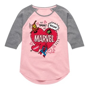 Girls' - Marvel - Valentine Heart Scribble Shirt Tail Raglan Graphic T-shirt - 1 of 3
