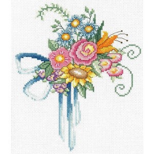 This exquisite design captures the essence of a vibrant flower bouquet adorned with a gracefully tied bow, creating a masterpiece that seamlessly blends nature's charm with an added touch of sophistication. Project includes full stitches, backstitching and French knots. Chart will be in black and white symbols with colored backstitch lines. Blooming Bouquet is designed to be stitched on 14ct White Aida fabric and uses 33 different colors of floss.