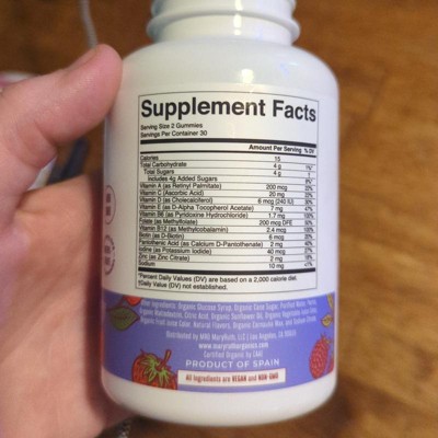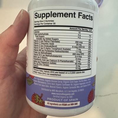 [This review was collected as part of a promotion.] What great gummies. It comes with a bunch of vitamins so the kids can get all their vitamins in what tastes like a candy to them. My daughter whose 8 loves the flavor or mixed berry and cherry. I can appreciate the organic aspect of it. The gummies do have some sugar but according to the ingredients its cane sugar. Says all ingredients are organic and vegan. Theres a 30 day supply in here which I think thats great. Overall I think these are great. I received an incentive to write this review.