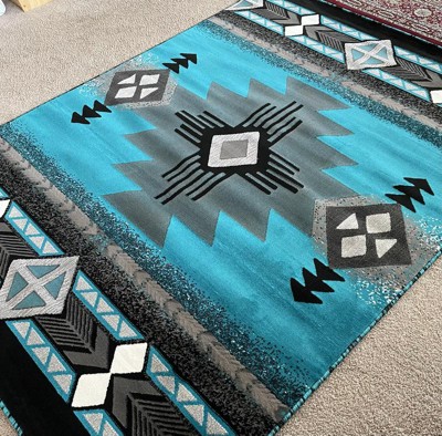 [This review was collected as part of a promotion.] I love this turquoise southwestern rug. It is so soft and beautiful made. It sets off any room and brightens it up. I love having company and showing it off they want to take it home with them. It is so soft on your feet.
