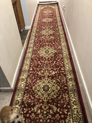 [This review was collected as part of a promotion.] The Mersin Collection Persian Style 3' x 15' Burgundy Area Rug - Olefin Rug is a very nice and colorful rug. I love the detail in it and the color. I had originally planned on putting it in our living room but decided on putting in my hallway which I am very pleased with because I think it brings out all of the detail better.
