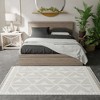 - Experience refined elegance with our "Cloud Shag" area rug, adorned with geometric patterns in shades of white and grey. This rug, with its harmonious color palette, exudes a sense of calm and sophistication, making it a perfect centerpiece for any room. The sumptuous shaggy texture promises unparalleled comfort, turning your space into a haven of luxury. Its timeless design ensures it complements a variety of interiors.