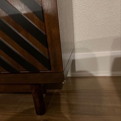 Beautiful piece of furniture! A bit tedious to put together but very sturdy once it's complete. The doors slide nicely and I like the combination of hidden and exposed storage areas. The center compartment has a cut away in the back, which would allow cords to run through. We might remove the middle shelf and use it for a mini fridge. We will be using the buffet to store games and barware. Excellent value!