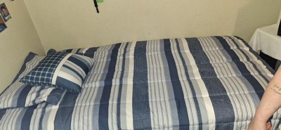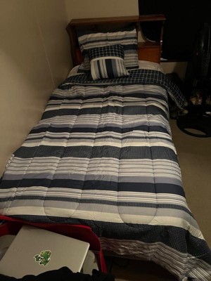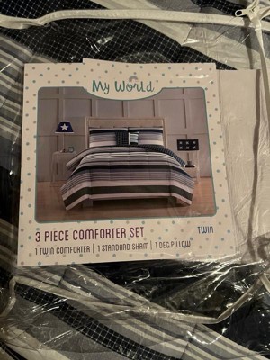[This review was collected as part of a promotion.] My son really liked his new comforter set that I put on his bed. He likes that it is soft and he likes the colors on it and that it is really comfy to cover up with. It comes with 1 pillowcase, 1 comforter, and 1 extra soft little pillow. I would definitely recommend this Mason Striped Twin Comforter Set by My World!