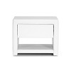 Hide all your bedtime necessities with style. Ideal for use alongside platform beds designed to rest very close to the floor, the petite Massey Designer Nightstand is made in Malaysia with a sturdy plywood and hardwood frame topped with a thin layer of foam padding and faux leather. Storage features include a single drawer for all your bedtime necessities as well as a single open shelf. The modern bedside table, which comes fully assembled, is also available in (sold separately). To clean, wipe with a damp cloth. Product dimension: 19.5"W x 13.75"D x 16"H , drawer(1): 13.75"W x 10.75"D x 3.37"H Product dimension: 19.5"W x 13.75"D x 16"H , drawer(1): 13.75"W x 10.75"D x 3.37"H