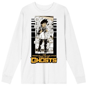 Rep your favorite comic series with this unisex adult long-sleeve t-shirt! The officially licensed Massively Multiplayer World of Ghosts tee features a big, bold graphic of the series' main character in full comic book action - an eye-catching image that has been professionally printed against a bright white background for long-lasting print quality. The long sleeves and crew neck offer comfort and style that are perfect for all-day, any-day wear, and since it's crafted from high-quality, 100% cotton, this tee ensures a soft and comfortable feel. When it's time for cleaning, simply machine wash it cold and tumble dry low for effortless care.
