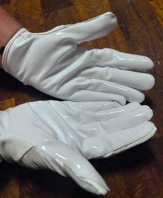 [This review was collected as part of a promotion.] My 11 year old really likes these gloves. They were a good fit just a little bit for the large size. He said the grip was amazing and there was no slipping of the ball. They seem to be quality and will hold up. Not sure about the white color for playing football but that not a quality thing. Great set of gloves.