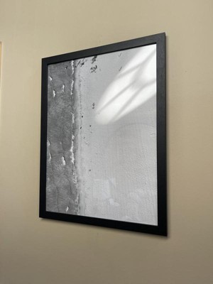 This frame is easy to put a picture in. It fits an 18x24 print perfectly. I like that the plexiglass sheet was double wrapped, especially since it came with a sticker on the front. It has different brackets to hang it horizontal or vertical. It has a black wood grain frame and was very easy to hang up.