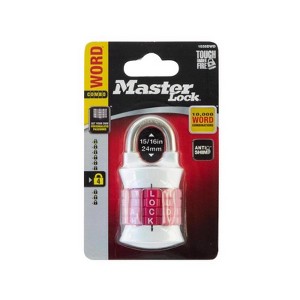 1-1/2in (38mm) wide set your own word combination padlock; assorted colors easy to set, amp and reset using memorable words hardened steel shackle for extra cut resistance dial grip points for accurate dialing slim footprint & ergonomic design for ease of use. he hardened steel shackle provides extra cut resistance, making it an ideal choice for securing lockers, cabinets, and storage units.