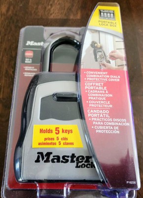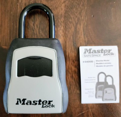 The Master Lock No. 5400D Portable Lock Box features a 3-1/4in (83mm) wide metal body for durability. The portable design offers removable "over the knob" installation. Set your own 4-digit combination for keyless convenience and increased security. The shutter door protects combination dials from weather, dirt and grime; and molded body and vinyl coated shackle prevent scratching. The Limited Lifetime Warranty provides peace of mind from a brand you can trust.